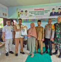 Dalam kesempatan tersebut, Bupati Aceh Jaya, Safwandi, S.Sos., yang diwakili oleh Asisten II Perekonominan dan Pembangunan, Jonni Sahputra, secara simbolis menyerahkan bantuan beras kepada penerima manfaat. Setiap keluarga mendapatkan 20 kilogram beras, yang mencakup alokasi untuk bulan Juni dan Juli 2025.